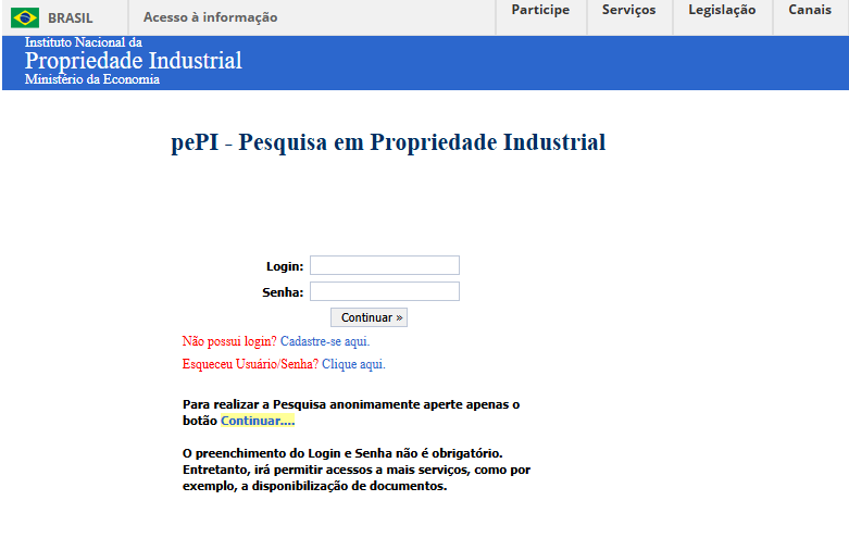 (Créditos: Capturas de tela do site oficial do INPI)
