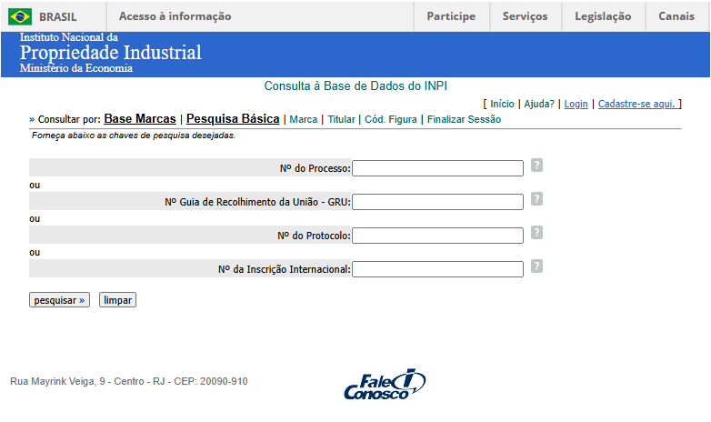 3. Na página de pesquisa, clique em “Marca” ao lado do termo “Pesquisa Básica” e chegue ao ambiente digital da pesquisa.